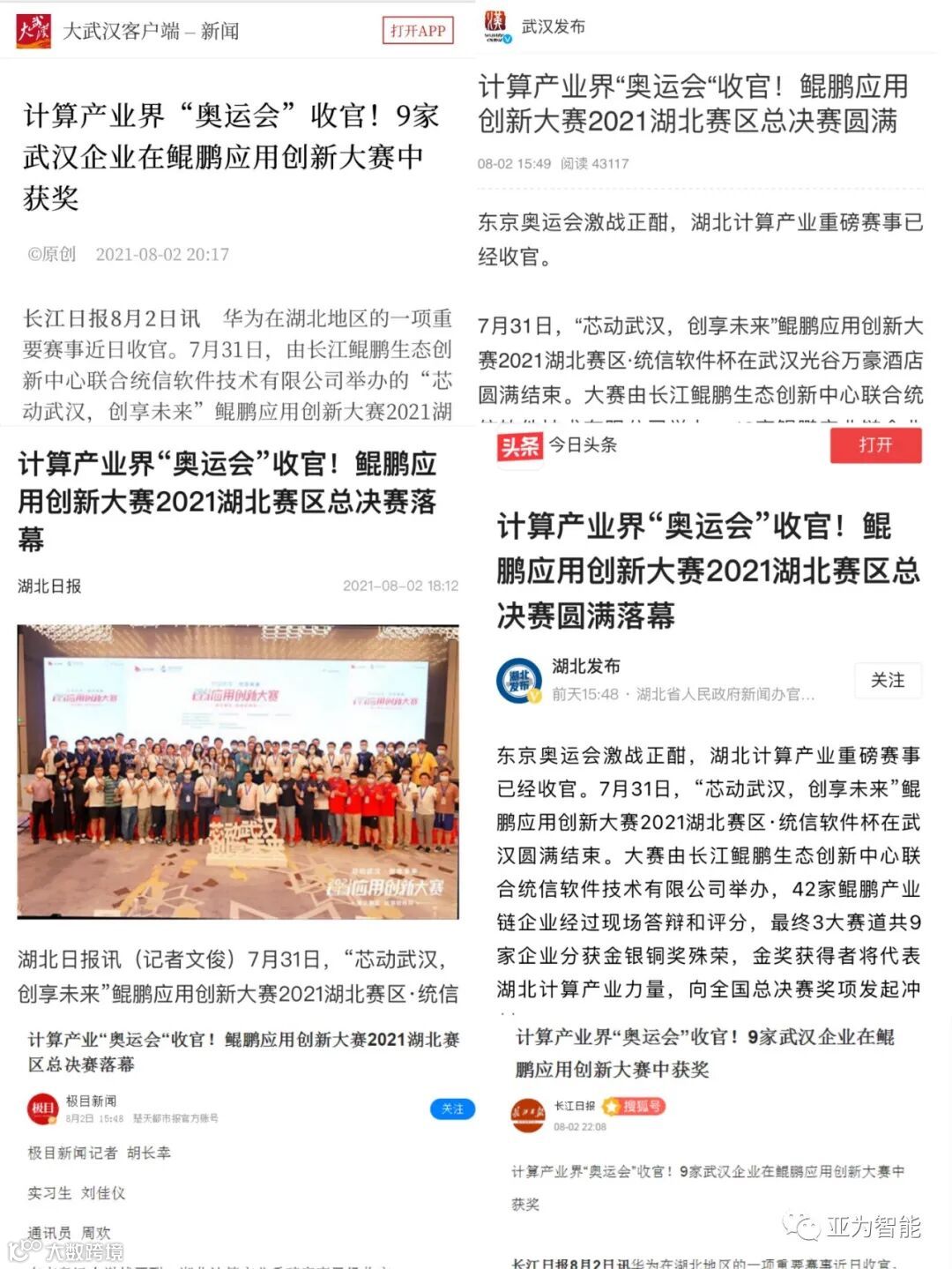 7月31日,“芯动武汉,创享未来”鲲鹏应用创新大赛2021湖北赛区·统信软件杯在武汉圆满结束。大赛由长江鲲鹏生态创新中心联合统信软件技术有限公司举办,经过激烈的角逐,亚为获得大企业赛道银奖。