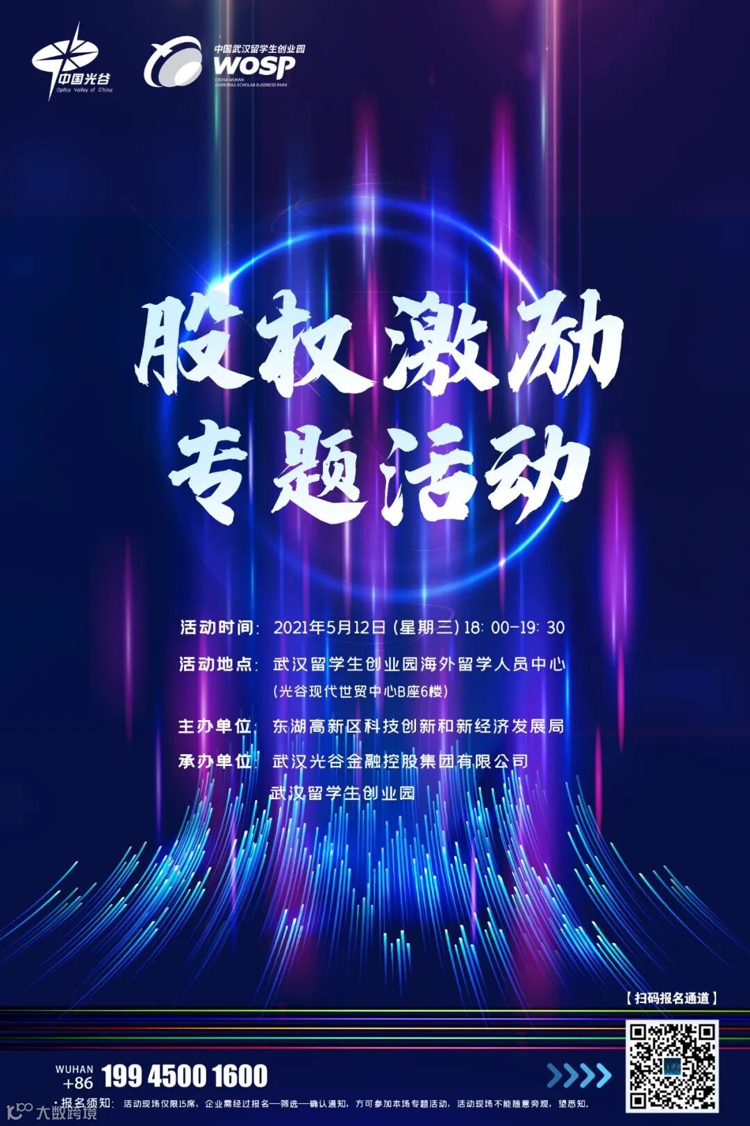 东湖高新区股权激励专题活动将于2021年5月12日(周三)18:00-19:30举办