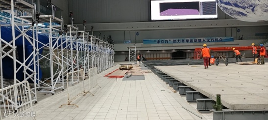 为满足2022冬奥会冰壶比赛需求,在原有泳池上搭设4条标准冰壶赛道,包括钢结构支撑体系、混凝土面板和制冰系统及配套管线、赛场除湿系统。通过建立模块化搭拆工艺、检测标准、制冰工艺标准,实现国家游泳中心“冰水”功能快速转换的成套技术,填补国内场馆“冰水”转化的技术空白。