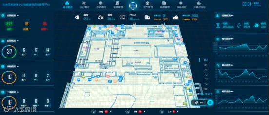 将国家游泳中心能源管理中心、设备监控系统、智能照明控制系统、消防系统、综合安防系统(含视频监控、门禁、电子巡更、周界防范)、场馆票务系统及设备管理系统整合集成,建立全生命周期的管理模式,运用大数据分析,实现环境监测、能源管控、设备运维管理可持续, 实现建筑物内设备设施数据共享、多系统联动、功能协同,实现场馆运行能耗和碳排放的智能化管控,打造智慧场馆可持续运维管理平台。