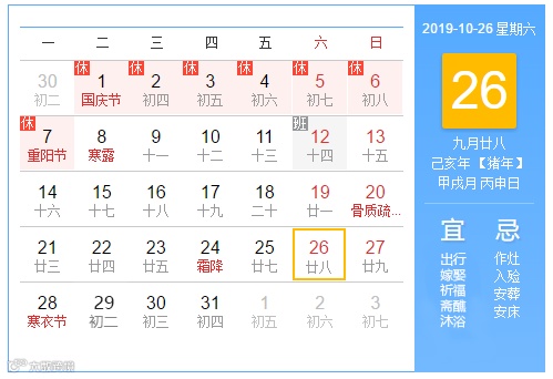 2019年10月26日,星期六,农历二零一九年九月廿八,宜出行、宜结婚、宜领证、宜嫁娶……对于情侣们来说真的是个好日子呢!同样,对于园区单身的小伙伴来说,今天也是一个有机会偶遇那个“TA”的好日子哦!
