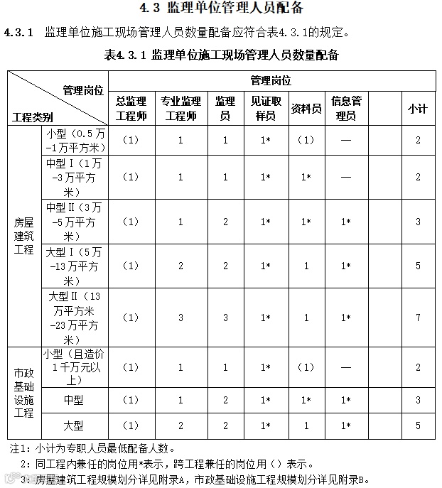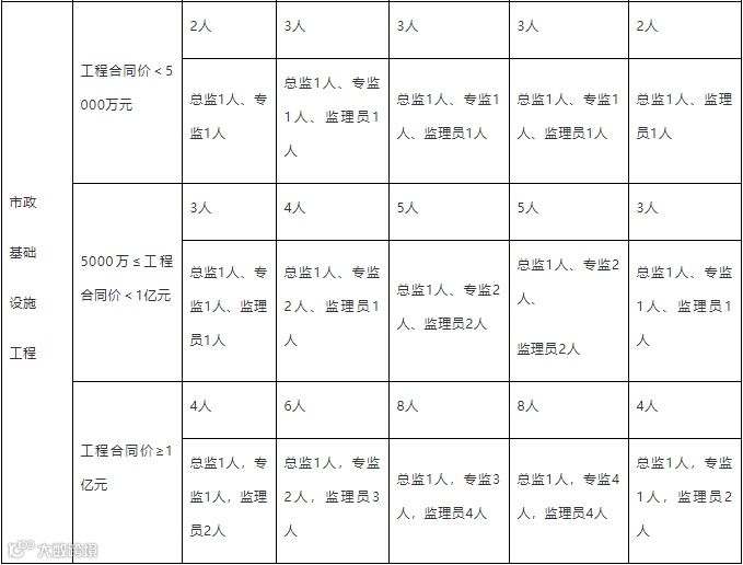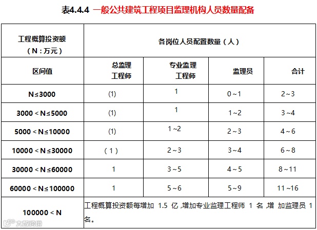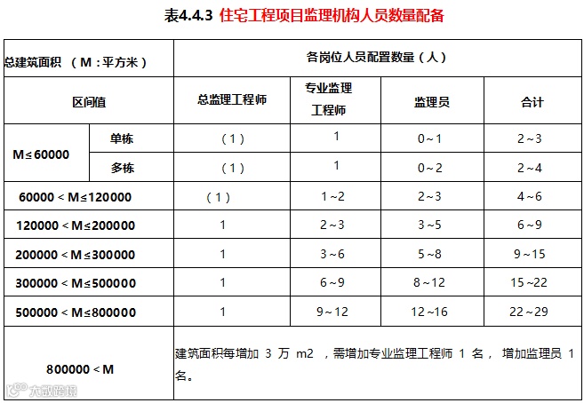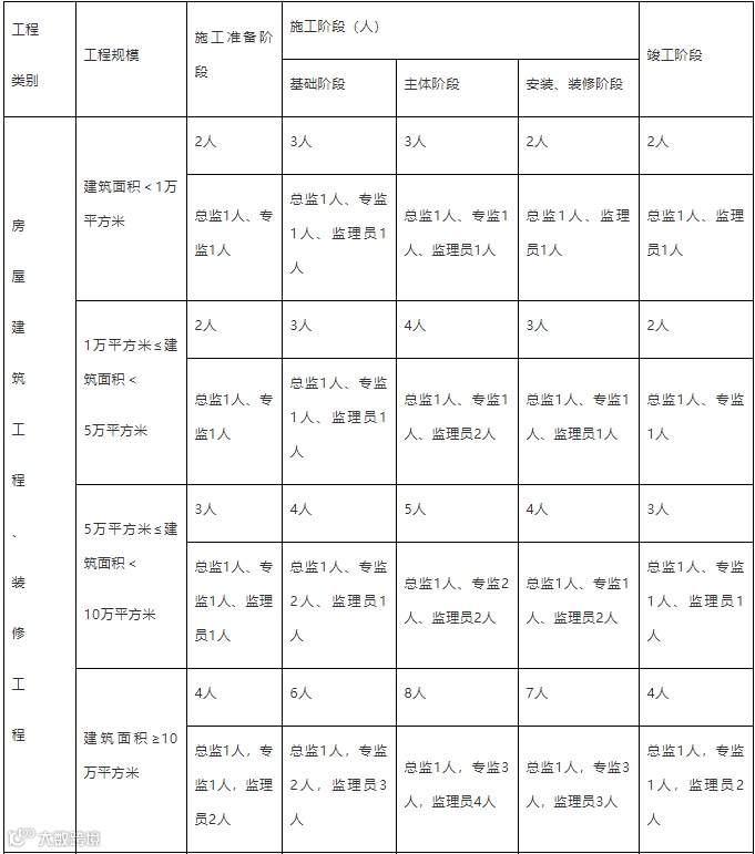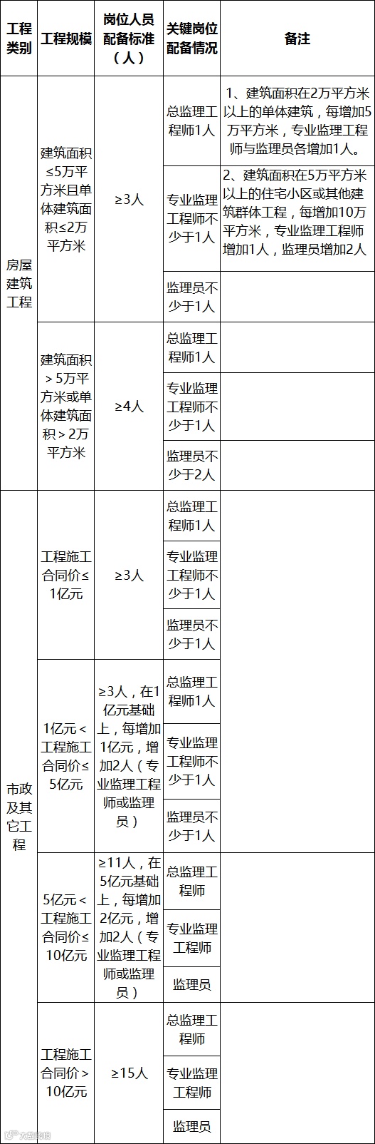 (3)房屋建筑工程建筑面积10万平方米以上,市政,监理人员随之增加。