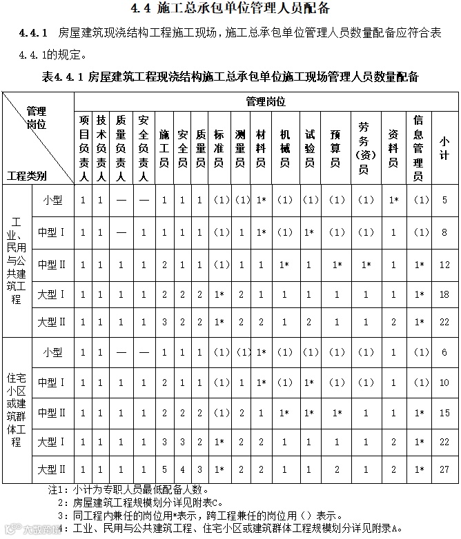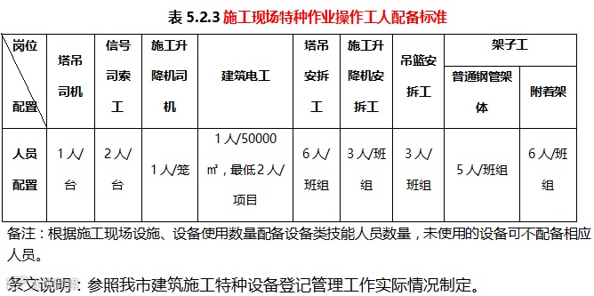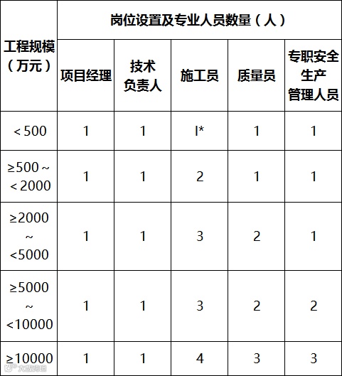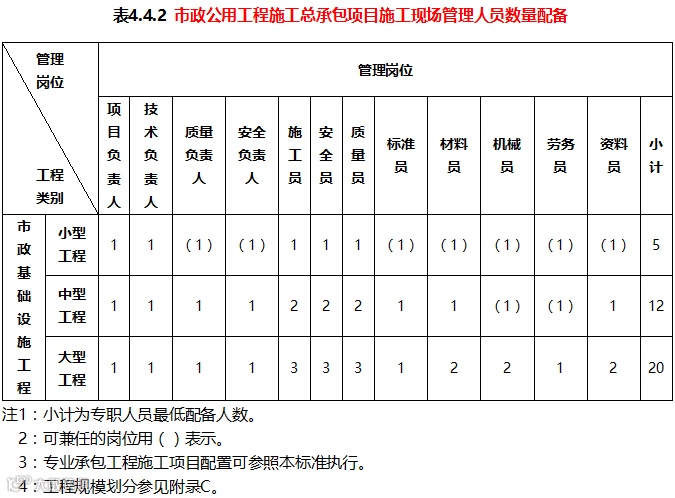 注:1.此标准为施工现场专业管理人员最低配备标准,施工企业应当根据工程项目施工实际工作需要配备人员。