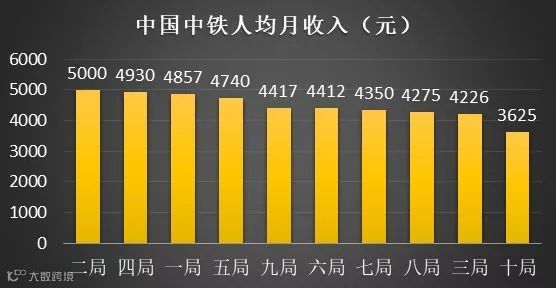 3.铁路建设系统的工程局,员工收入相对要低一些,中国中铁和中国铁建合计只有5家单位进入到前20名,除了中铁十六局平均员工收入在5800元(第8名)之外,其他的四个局平均员工收入都排在靠后的位置。