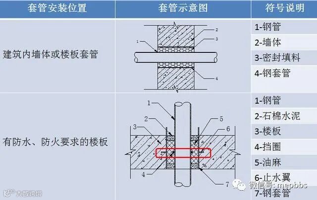 3、预留套管的,套管内径尺寸应比需穿过管外径至少大2号;有保温要求的过管,预留的套管内径应保证保温(要依据图纸保温材料的厚度)过的管能完全穿过。