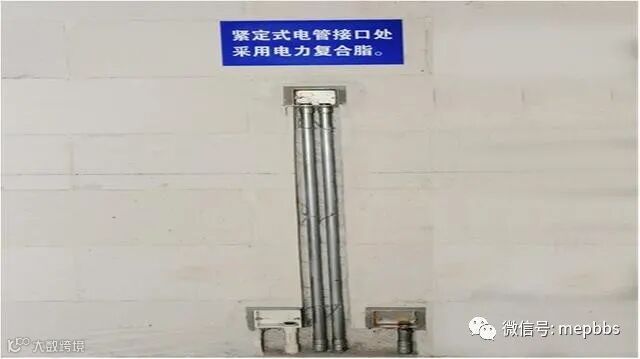 3、金属导管严禁对口熔焊连接,镀锌和壁厚小于等于2mm的钢导管不得套管熔焊连接。壁厚大于2mm及其以上的非镀锌钢管,可采用管箍连接或套管焊接。管口锉光滑、平整,接头应牢固紧密。