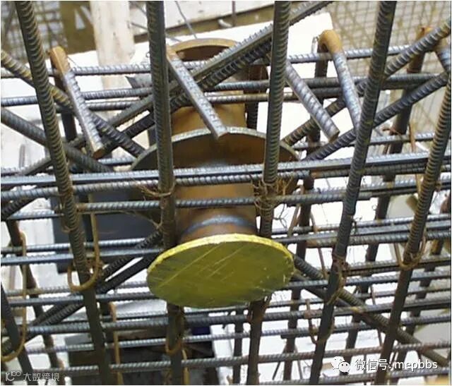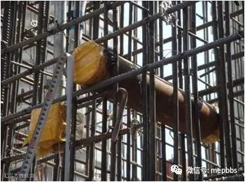 5、套管安装应尽量避免损坏钢筋和切断钢筋,特别注意不能破坏预应力钢筋。如钢筋过密,安装套管有困难,需要割断钢筋者,必须事先与土建工程师取得联系,确定加强筋方案,并取得设计的同意后方可进行。