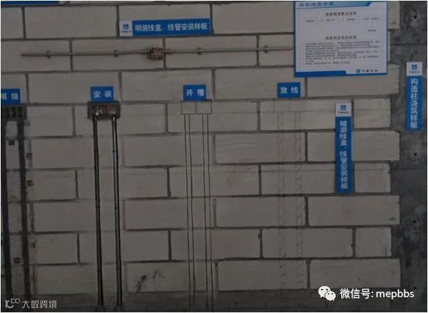 8、与土建专业确认好梁下或楼面上墙砌筑的位置,以使电管出梁和楼面时不会在砌墙外。