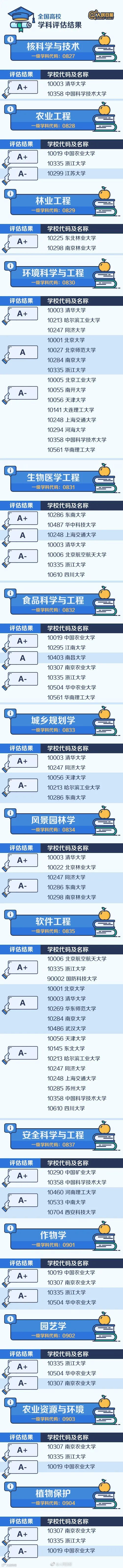 认为比外面五花八门各类排行榜要靠谱得多。以下是由人民日报微博整理的一份A类学科分布高校,列出了每个学科的全国最顶尖高校,可供高考、考研挑选好专业用。也可供准青椒们挑选工作单位作参考。