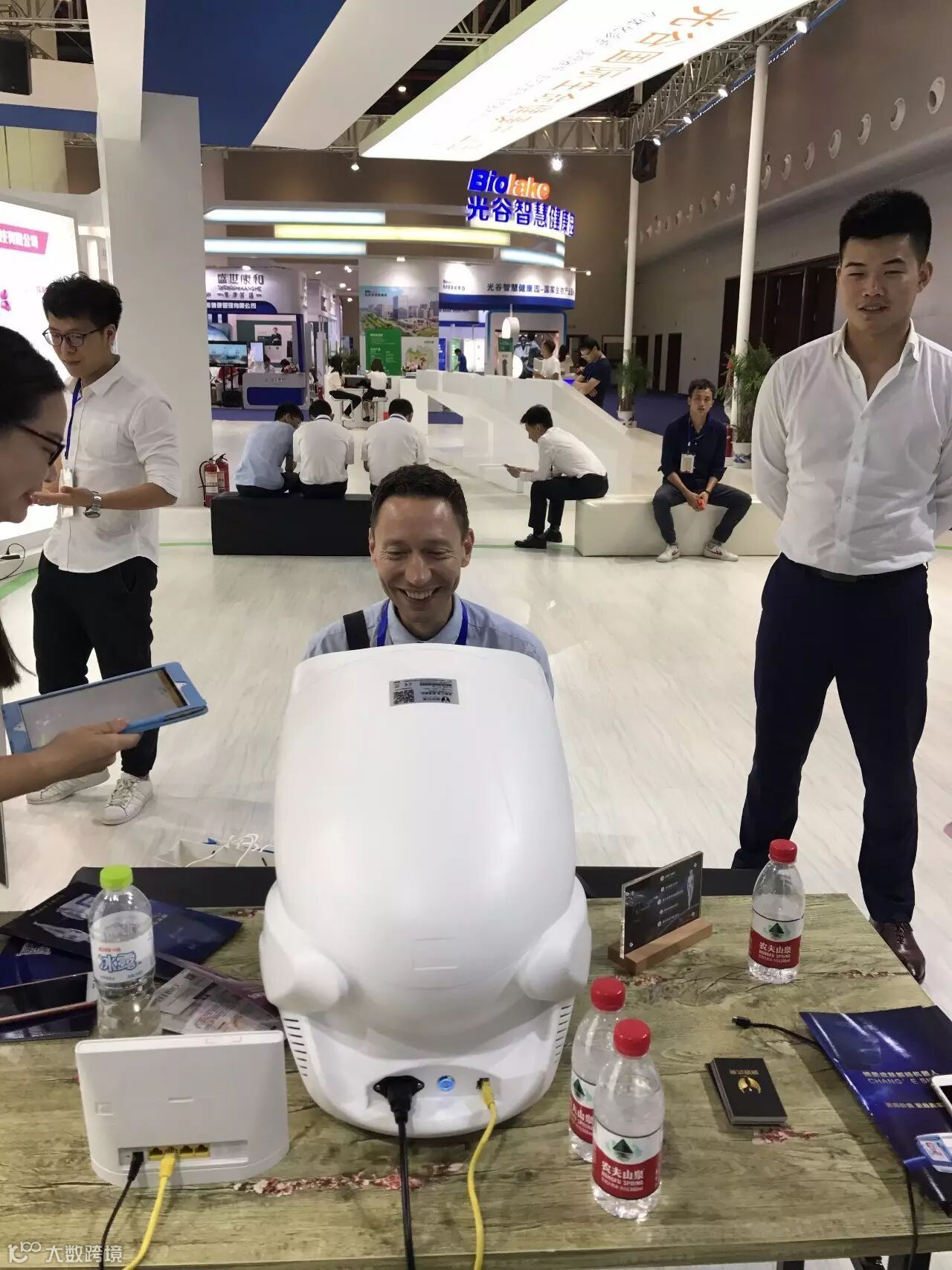 英国驻汉领事毕思德先生体验在孵企业产品(嫦美科技有限公司)