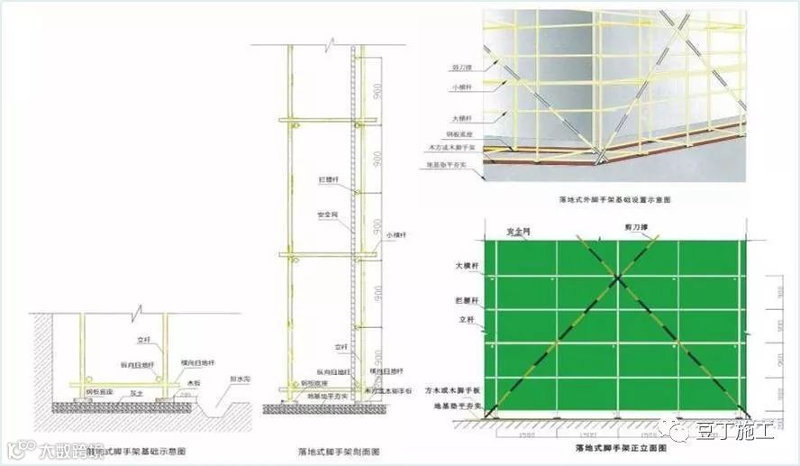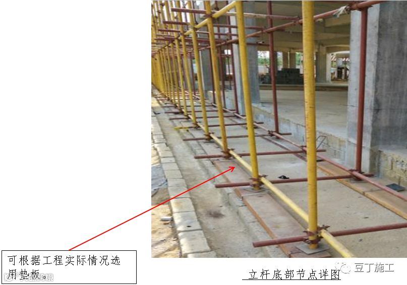 ①立杆基础应按方案要求平整、夯实,并采取排水设施。