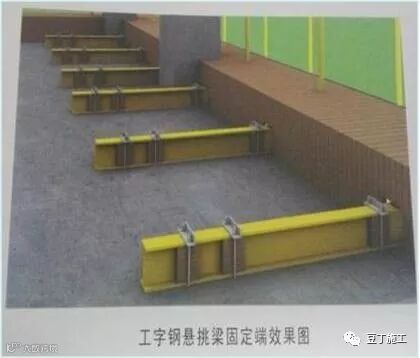 6.悬挑钢梁支撑点应设置在结构梁上,不得设置在外伸阳台或悬挑板上,否则应采取加固措施。