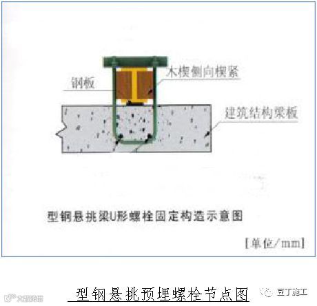 3.用于锚固的U型钢筋拉环或螺栓应采用冷弯成型。U型钢筋拉环、锚固螺栓与型钢间隙应用钢楔或硬木楔楔紧。