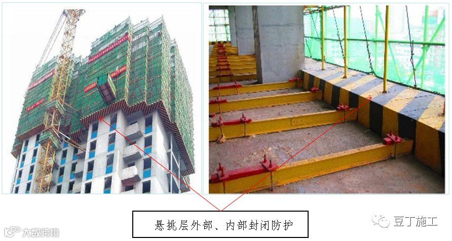 4.悬挑式操作平台的外侧应略高于内侧;外侧应安装防护栏杆并应设置防护挡板全封闭。