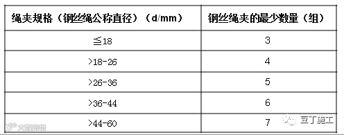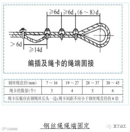 6.悬挑式操作平台安装时,钢丝绳应采用专用的钢丝绳夹连接,钢丝绳夹数量应与钢丝绳直径相匹配,且不得少于4个。建筑物锐角、利口周围系钢丝绳出应加衬软垫物。