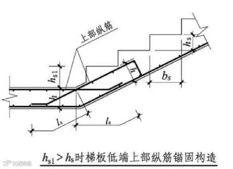 《16G101-2》第50页,梯板低端第一个踏步底端要做平行于梯板切角。