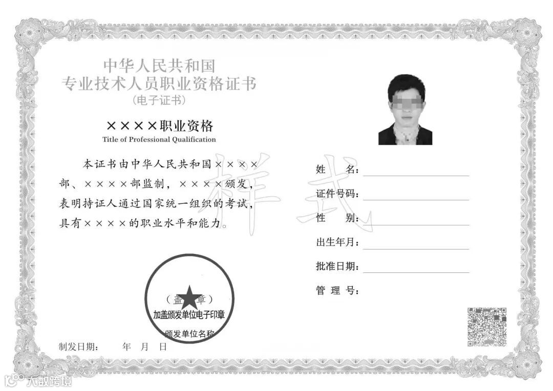 人社部:关于推行专业技术人员职业资格电子证书的通知(附证书样式)