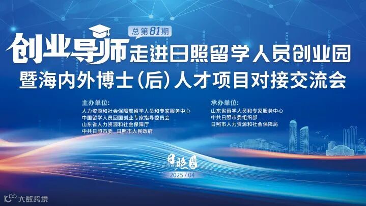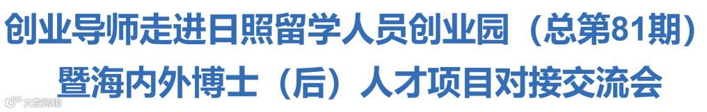 4月8日-10日,创业导师走进日照留学人员创业园(总第81期)暨海内外博士(后)人才项目对接交流会活动在山东日照成功举办。活动由人力资源和社会保障部留学人员和专家服务中心、中国留学人员回国创业专家指导委员会、山东省人力资源和社会保障厅、中共日照市委、日照市人民政府主办,山东省留学人员和专家服务中心、中共日照市委组织部、日照市人力资源和社会保障局承办。