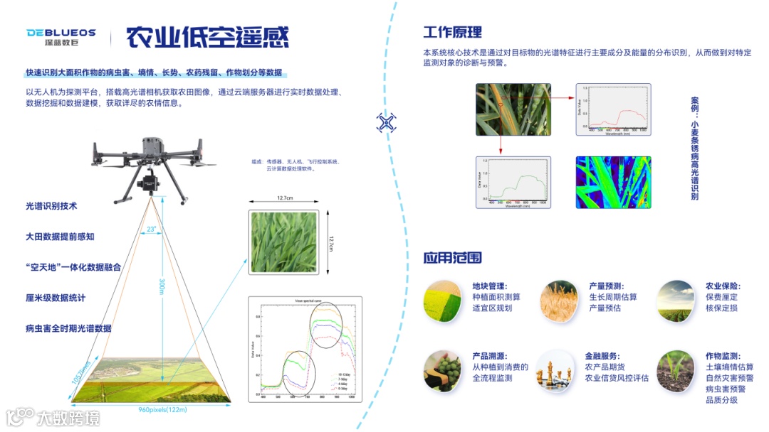 深蓝智谱率先在山东省开展低空多源遥感技术的研究。在张立人院士带领下,研发团队先后进行了算法模型构建、光谱图像处理程序开发、光谱信息分析系统构建等工作。基于自主研发的低空高光谱遥感核心技术,公司与中国科学院空天信息创新研究院、中国农业科学院、中国农业大学、山东省农业科学院等高校和科研院所达成深度合作,共同推进多源遥感技术创新应用。