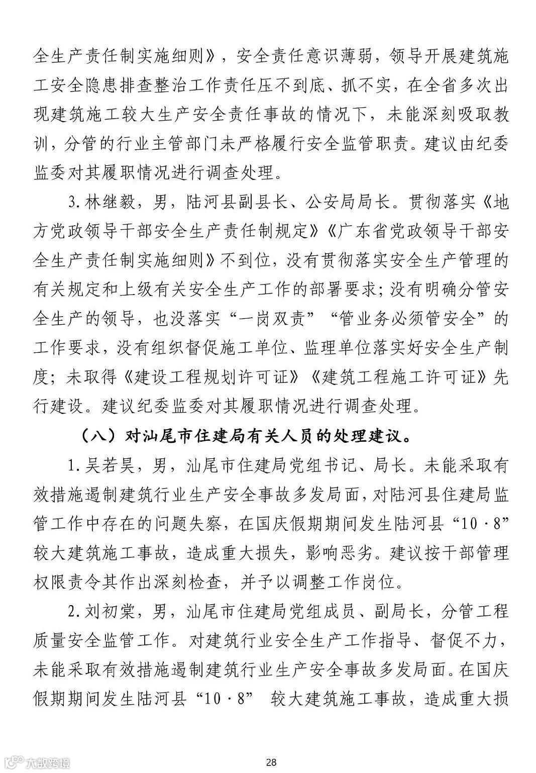 3.林某毅,男,陆河县副县长、公安局局长。建议纪委监委对其履职情况进行调查处理。