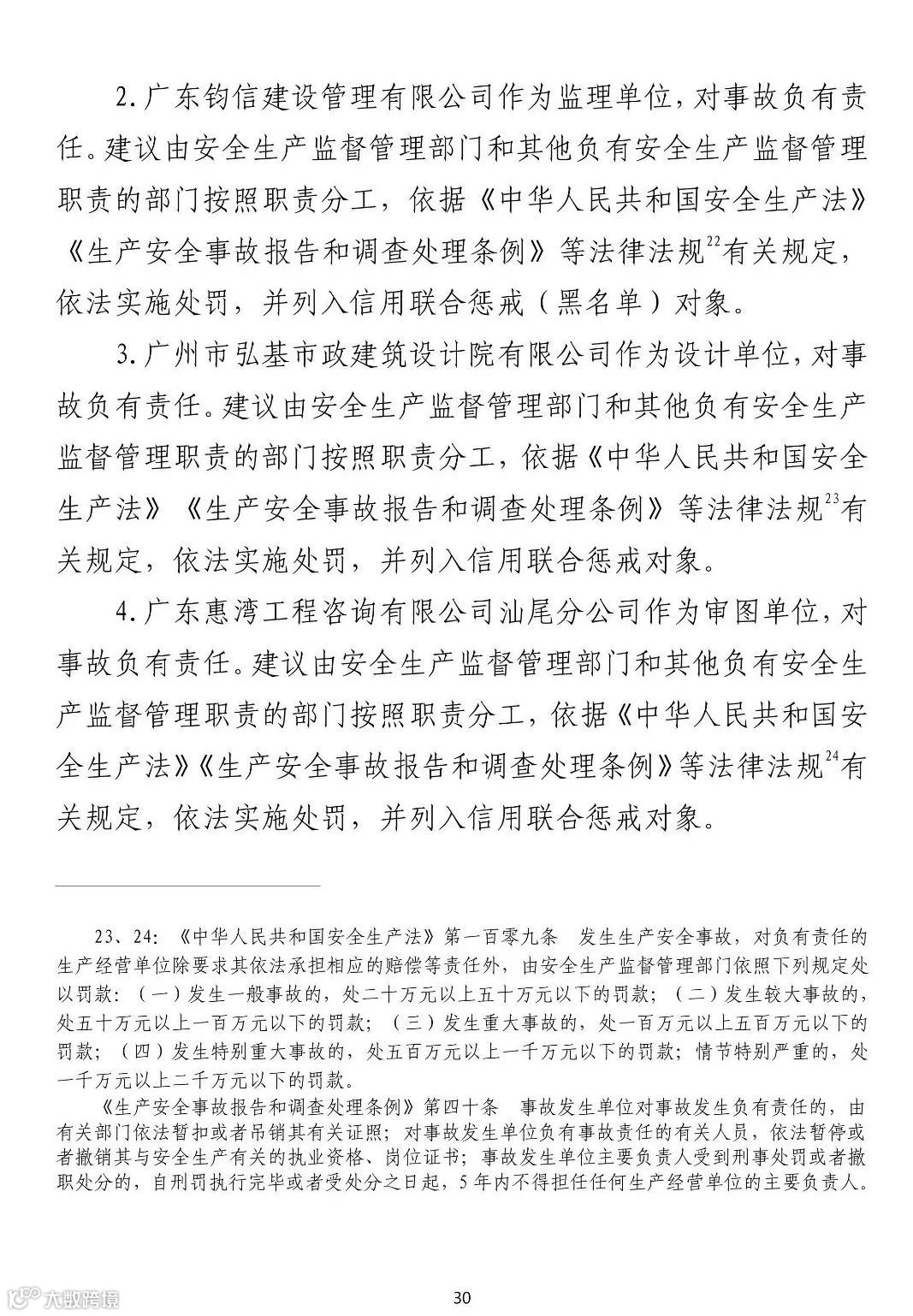 2、田某,男,涉事工地总监理工程师。建议由司法机关依法追究其法律责任(2020 年11月17日被汕尾市检察院批准逮捕)。