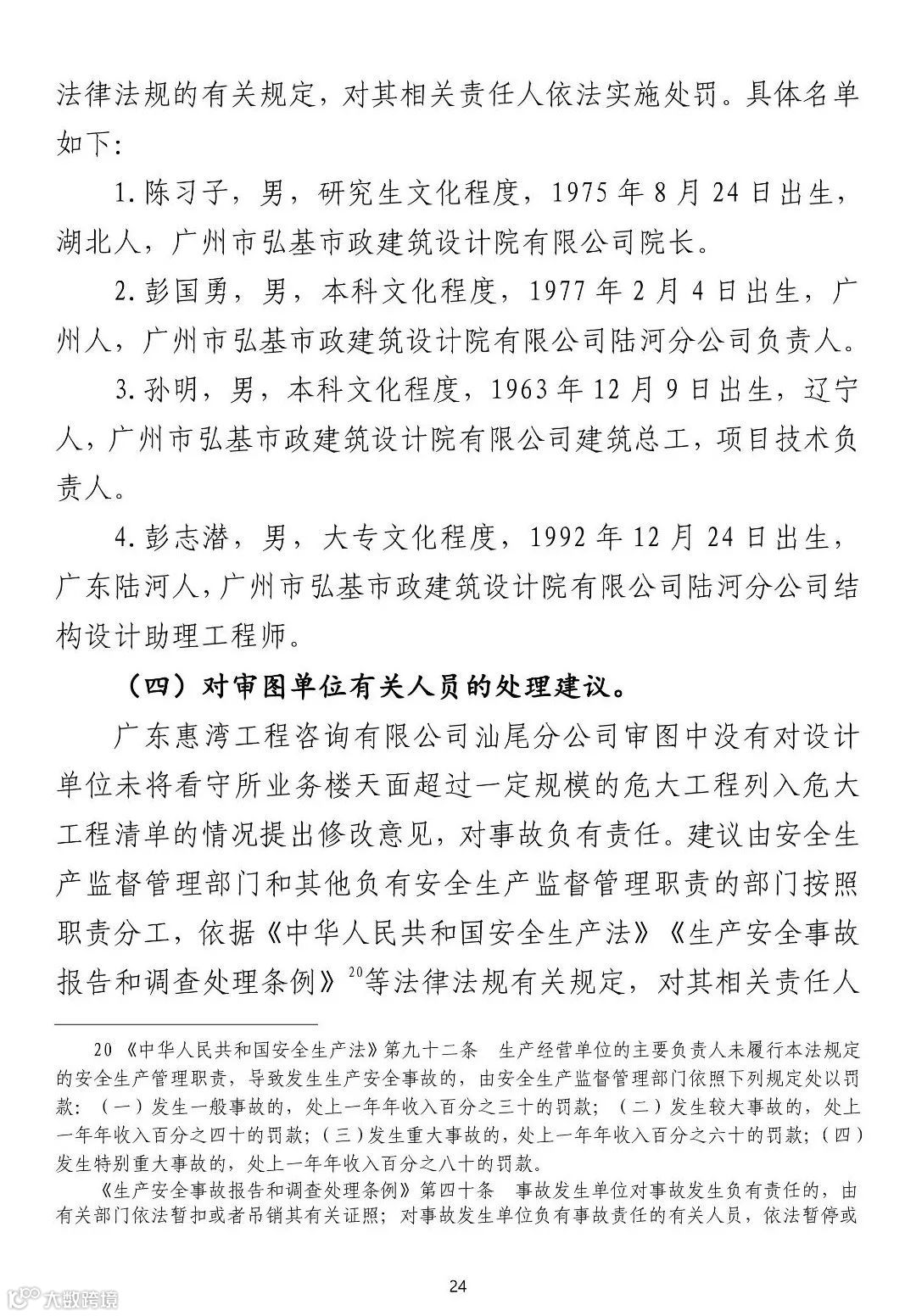 3、杨某平,男,中专文化程度,涉事建筑的“包工头”,项目实际负责人,事发现场作业的主要负责人。建议由司法机关依法追究其法律责任(2020年11月17日被汕尾市检察院批准逮捕)。
