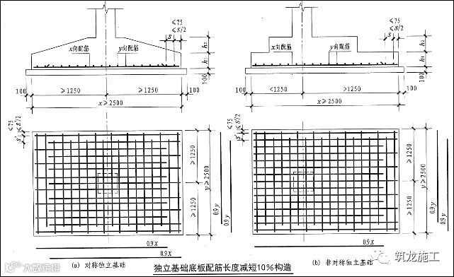 独立基础底板配筋长度剪短10%构造(16G101-3 P70)