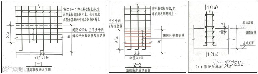 柱纵向钢筋在基础中构造(16G101-3 P66)