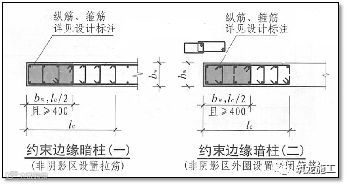 6、暗柱较长时,有些项目现场采用两个U形箍筋组合,并使用搭接连接,此做法增加了钢筋搭接长度,导致钢筋用量增加。暗柱应按16G101图集采用封闭式箍筋做法。