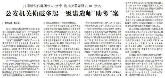 法制日报《公安机关侦破多起一级建造师“助考”案》一文披露: