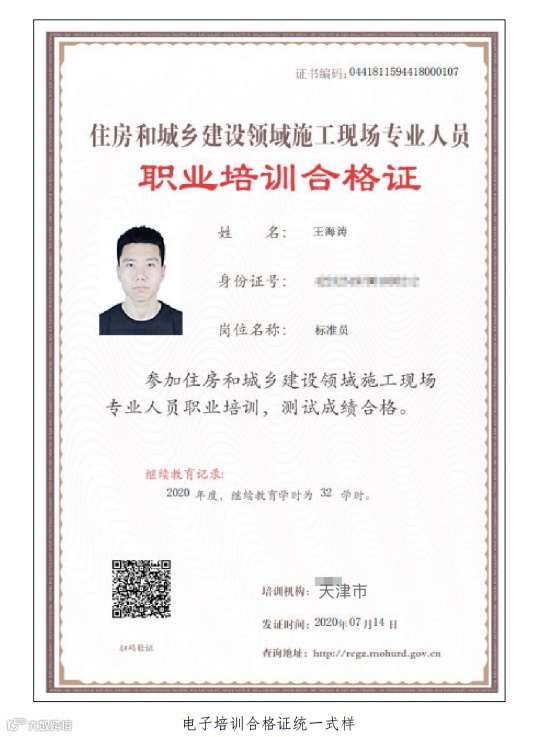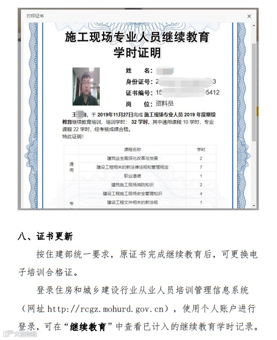 3、换发电子证书。登录住建部“住房和城乡建设行业从业人员培训管理信息系统”按提示进行操作,系统将自动完成“电子证书”换发。
