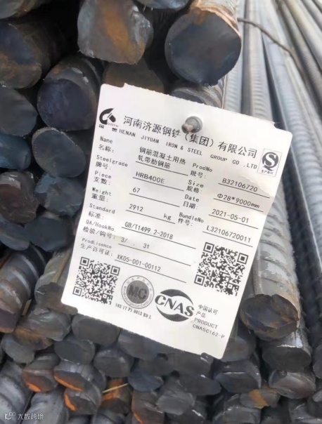 记者在施工现场看到,地上堆积钢筋的吊牌显示为济源钢铁,生产许可证为XK05-001-00112,规格为28*9000mm。但钢筋上所显示的钢号是XK05-001-00614,为陕西龙门钢铁。济源钢铁公司对此表示,公司所生产的钢筋许可证为XK05-001-00112,并非XK05-001-00614,与济钢公司产品合格标识不符,涉嫌存在造假情况。