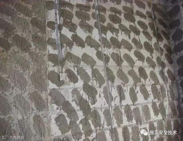 (3)、成型并且养护完毕的喷浆颗粒应能够牢固附着在基层上,无脱层、无空鼓,能够满足抹灰确定的要求。