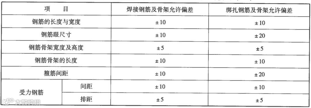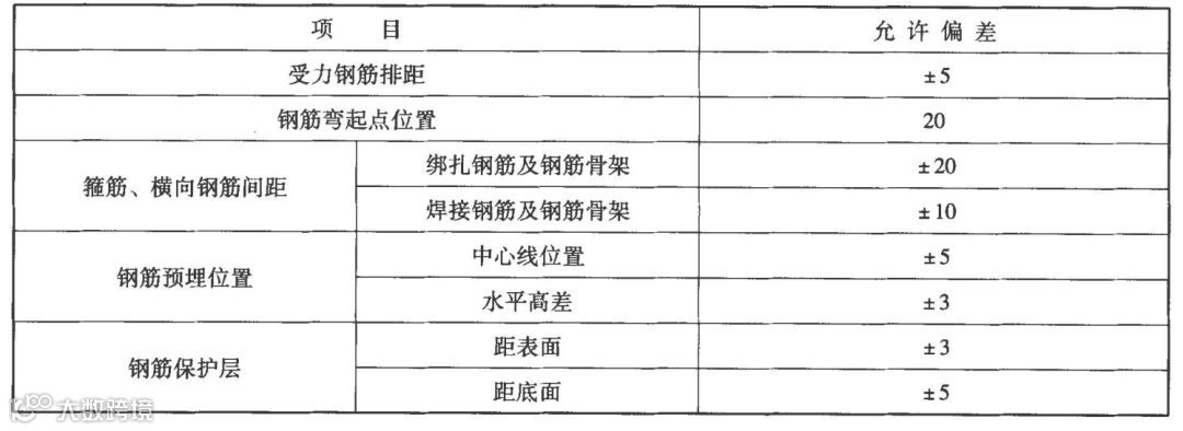 表7.5.4-1 面层钢筋及钢筋骨架焊接或绑扎的允许偏姜(mm)