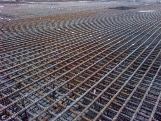 6 钢筋网片除外围两行钢筋交叉点全部绑扎外,中间部分交叉点可相隔交错绑扎牢固。