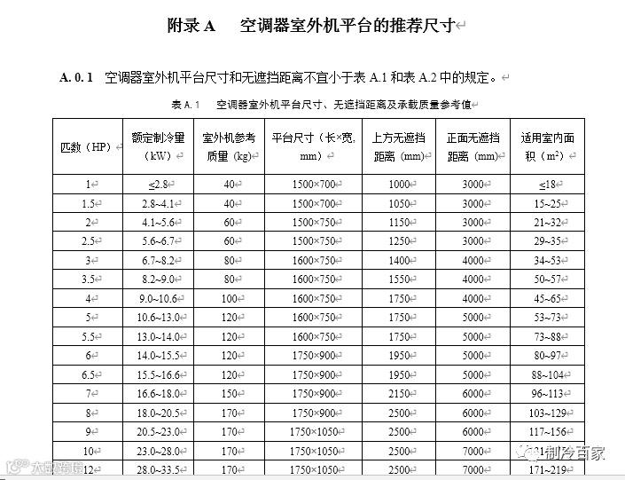 下表严格规定的不同匹数的空调外机,详细的外机平台尺寸: