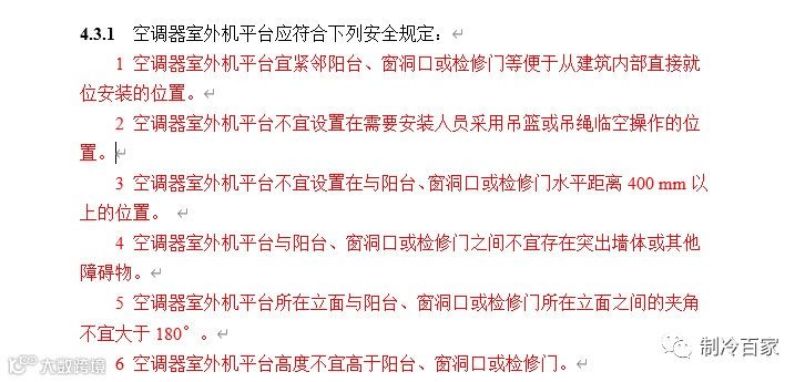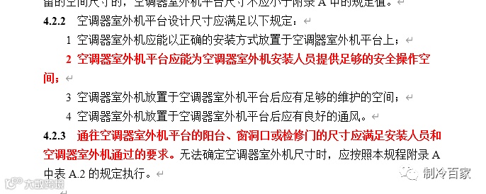 再来看看下面关于外机平台的安全规定;简直是写到了空调师傅的心坎里面了。