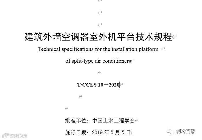 T/CCES 10-2020《建筑外墙空调器室外机平台技术规程》正式发布!