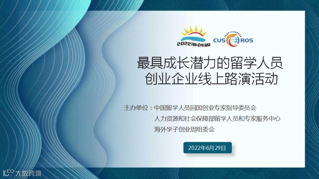6月29日,“最具成长潜力的留学人员创业企业线上路演”活动在2022海外学子创业周期间成功举办,线上同步直播。