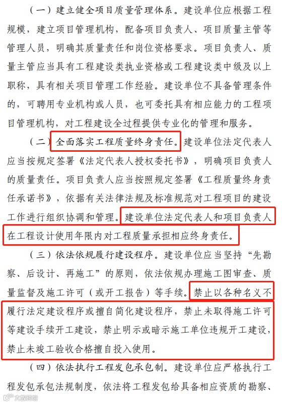 全面落实工程质量终身责任。建设单位法定代表人和项目负责人在工程设计使用年限内对工程质量承担相应终身责任。