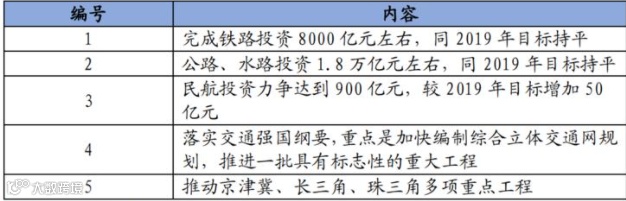 图为2020年交通部预期投资目标