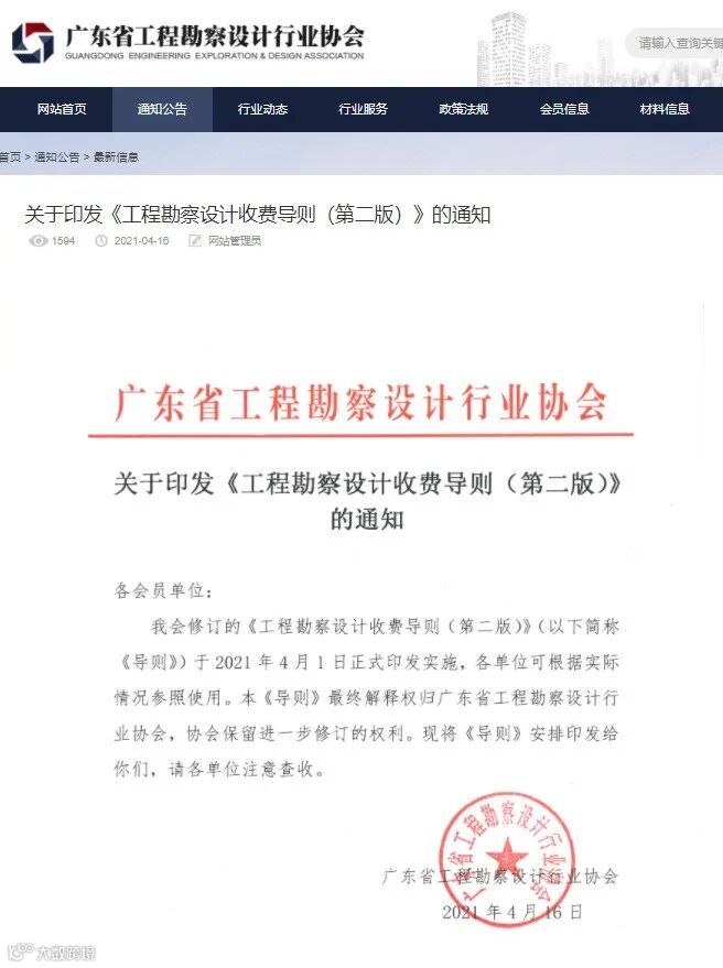 工程设计费的收费标准一直是业内关注的焦点。为给予设计师更好的从业条件,去年年底,广西勘察设计协会出台了《关于发布广西工程勘察设计收费指导标准(2020年版)的通知》,今年全国两会代表吴晨、王翠坤和冯远明确提出了“提高工程设计收费标准”等议案,将广大设计师们的心声表达了出来。没想到近日,在广东也终于有了实质性进展。4月16日,广东省工程勘察设计行业协会出台了《工程勘察设计收费导则(第二版)》,为设计收费标准提出了可行的参考标准。一起来看看~