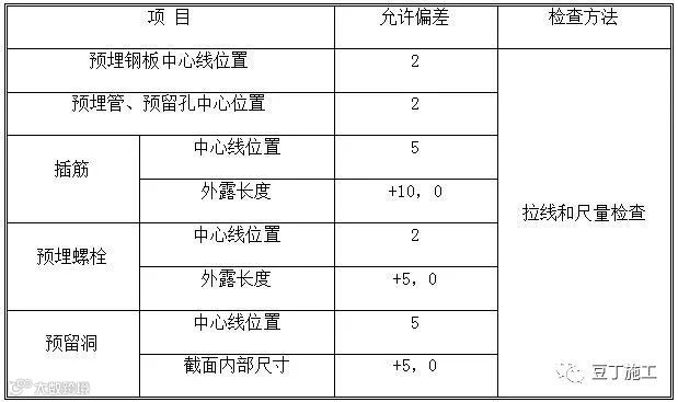 5.预埋件和预留孔洞的偏差控制在规范允许的范围内。