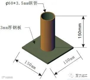 搭设支架之前,在架体下脚要铺设50mm厚垫板,并且尽量保证楼层间的上下架体在一条直线上,根据立杆组合需要安装钢管底座。