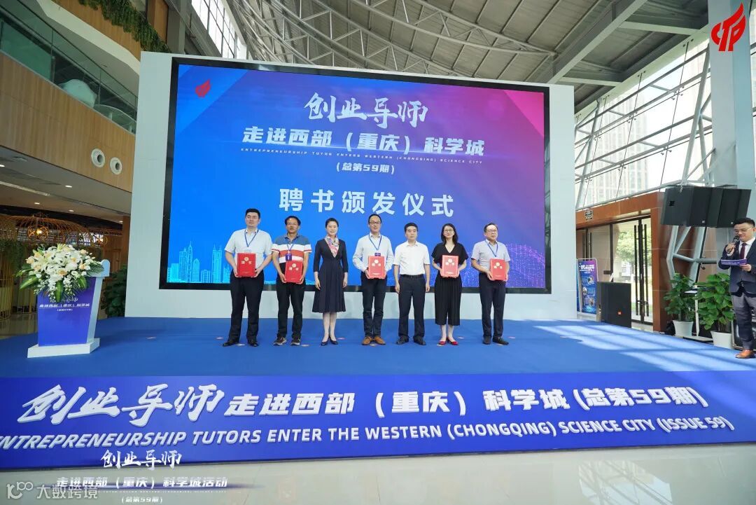 重庆市人力资源和社会保障局、副局长苏静,重庆市高新区党工委副书记徐晓强共同为创业导师颁发“重庆英才创业导师”聘书。