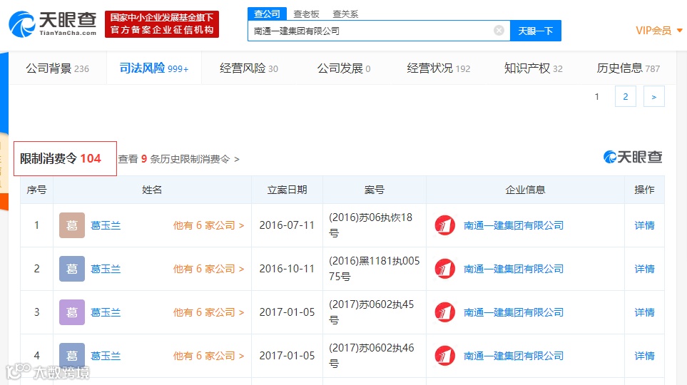 虽然南通一建的项目遍布全国各地,但是公司面临的问题也很多。根据天眼查查询信息显示,南通一建法律纠纷非常多,目前有 39条被执行人信息,89 条失信信息。包括葛玉兰在内的公司主要高管,累计收到 104条限制消费令。不仅如此,南通一建的法律诉讼达到了537件。
