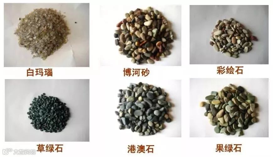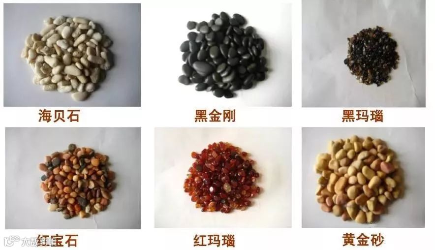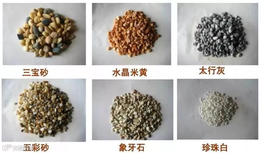 (1)水洗石:选用天然水洗石黄金砂,粒径4-6cm;
