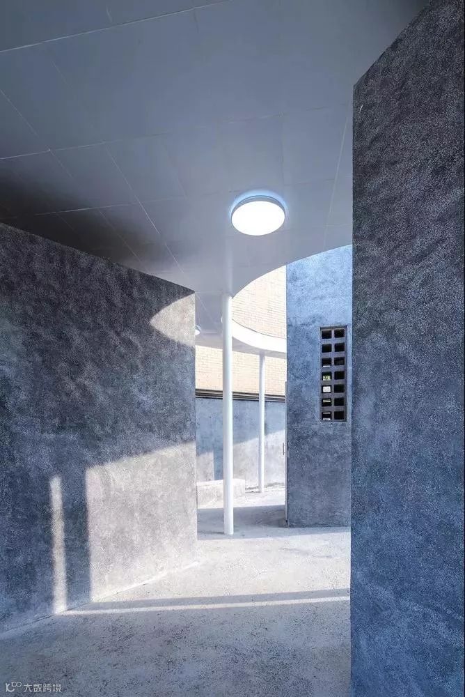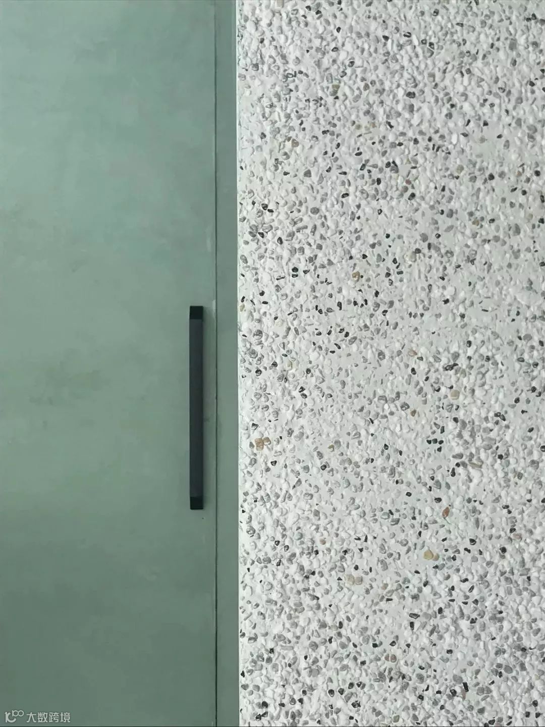墙体是夹杂了鹅卵石的水磨石,地面材料是混合了灰色石粒的水洗石,两者虽然颜色相似,却有着截然不同的质感肌理。