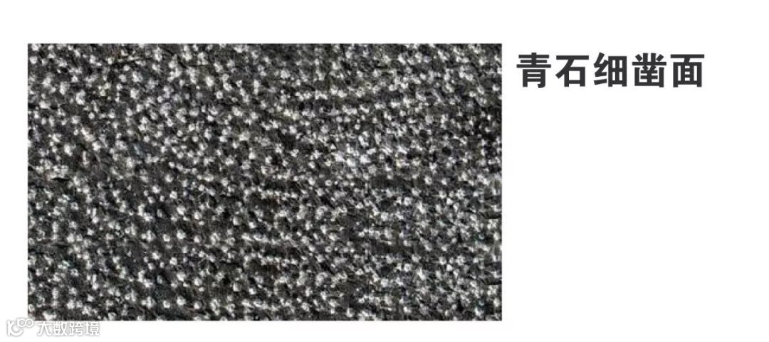 1.青石机切面:机切面是由荒料经过钢刀切割后产生表面平整带有明显的机切纹路的效果,是所有加工面层的基础。