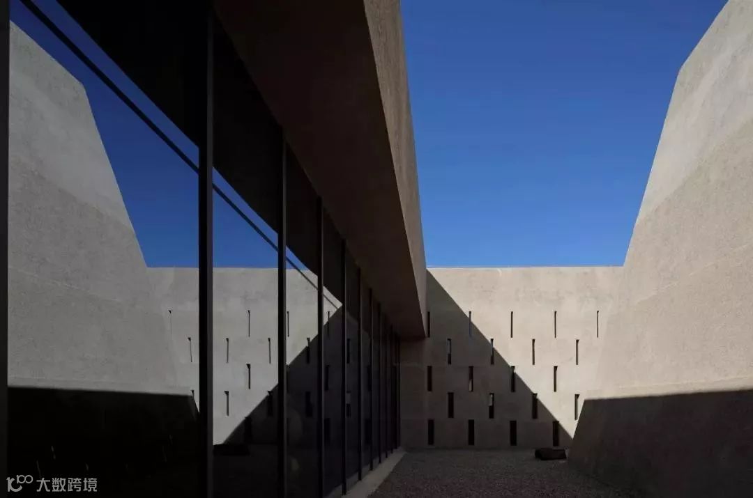 建筑设计由戈壁风貌而来,为呈现出玉门关遗址的历史厚重感和大漠荒凉的底色,墙面选用水洗石,恰到好处地诠释了建筑的地域特征。